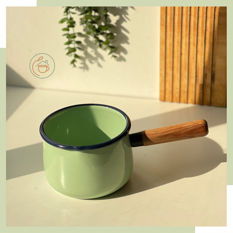 ابعاد شیرجوش لعابی: قطر دهانه 13.5 سانتی متر، طول دسته 12 سانتی متر و ارتفاع 10 سانتی متر