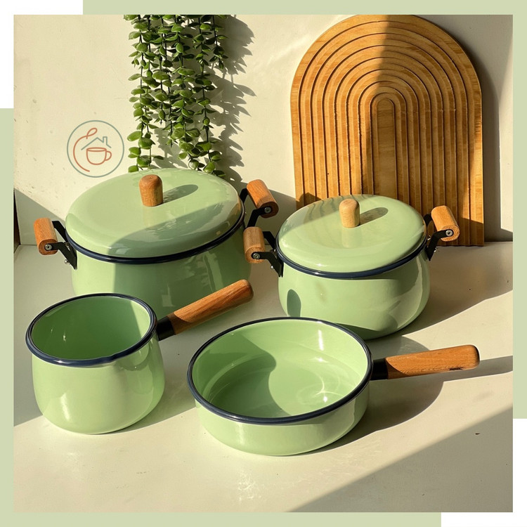 شامل دو سایز قابلمه و تابه و شیرجوش ودو درب 20و24با دسته چوبی (ولیوان و سس خوری قابل سفارش)