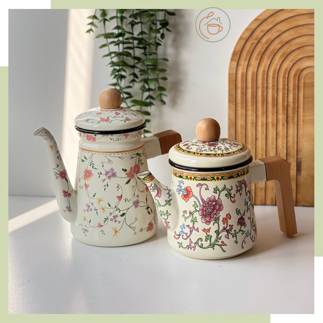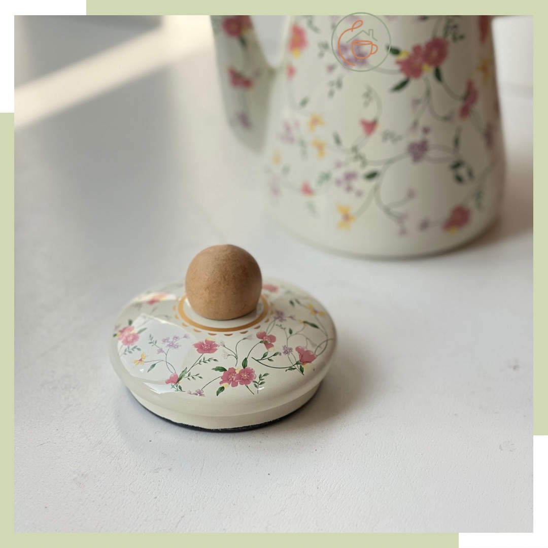 قوری لعابی گلهای بهاری طرح گل صورتی