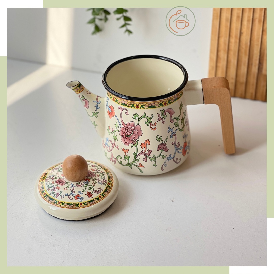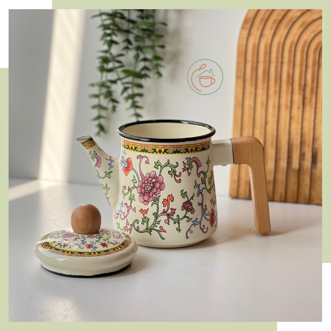 قوری لعابی گلهای بهاری طرح گل پائیزی