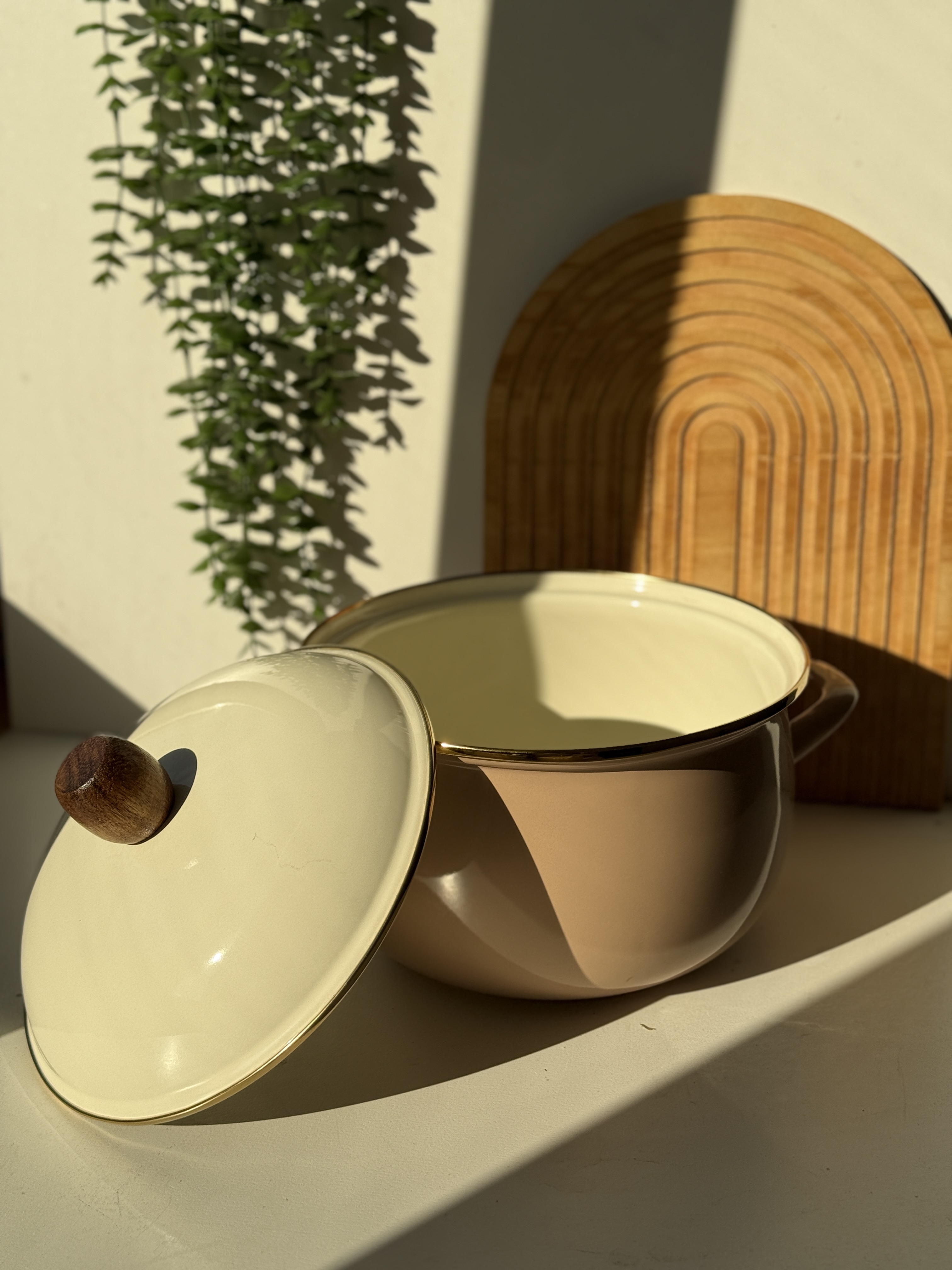 دستگیرههای چوبی درب، حس طبیعی و مقاومت بالا در برابر حرارت ایجاد میکنند و دستههای یکپارچه لعابی، استحکام بدنه را افزایش داده و ظاهر محصول را یکدست و حرفهای کرده است. این ست تولید کشور چین و تحت برند معتبر Langfei Group ارائه میشود.