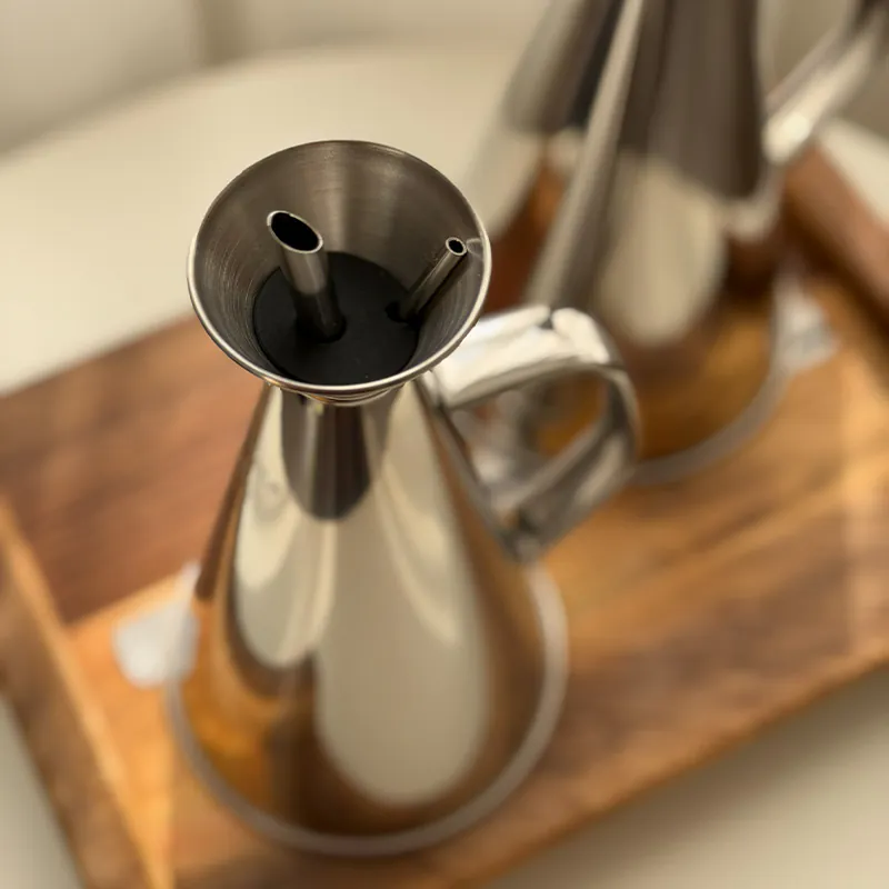 اگر از بطریهای پلاستیکی و بیکیفیت خسته شدهاید، وقتش رسیده آشپزخانهتان را با روغنریز استیل طرح Zara ارتقا دهید. این روغنریز با طراحی مینیمال و بدنه براق، ظاهری لوکس به میز یا کانتر آشپزخانه شما میدهد.