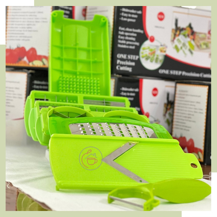 – رنده و خردکن با محافظ – تیغه برش و ورقهکن – پوستکن سرامیکی – شش مدل تیغه خردکن – یک ظرف در دار برای ذخیرهسازی مواد خردشده – داری یک اهرم فشار